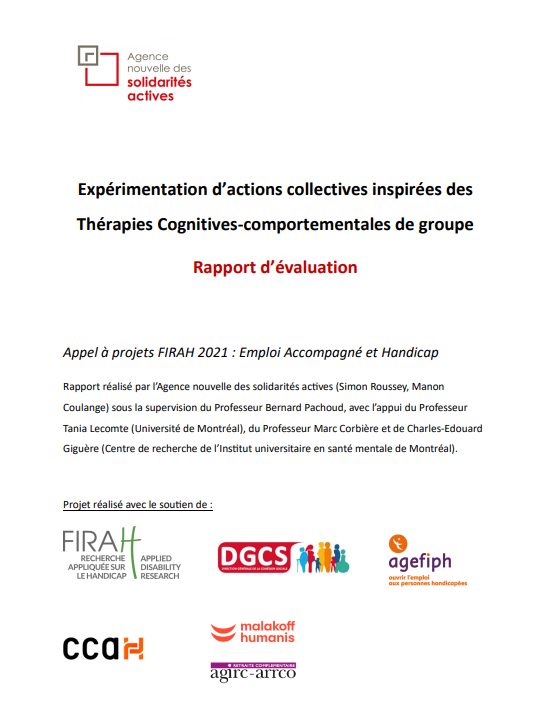 La recherche soutenue par la FIRAH (Fondation Internationale de la Recherche Appliquée sur le Handicap), intitulée « Expérimentation d’actions collectives inspirées des Thérapies Cognitives-comportementales de groupe dans les dispositifs d’Emploi accompagné », s’est achevée en 2024 et a été présentée lors d’un webinaire de restitution en 2025, à retrouver ici.