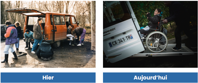Chaque jour, pouvoir se déplacer, aller vers les activités extérieures, vers les consultations pour les soins, est indispensable pour les personnes polyhandicapées. Or, c’est à partir des années 1970 qu’apparaissent les véhicules adaptés aux personnes handicapées (véhicules PMR), qui n’étaient alors ni très confortables, ni très sûrs, ni faciles à manier.En raison du coût important de ces véhicules, ils étaient à l’époque rares au Cesap, comme ailleurs.