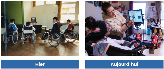 Ces cinquante dernières années ont été marquées par de grandes avancées en matière de technologie et d’aides techniques. On le sait, jusqu’à la fin des années 1980, les personnes en situation de polyhandicap passaient le plus clair de leur temps allongées sur des lits, sans installation spécifique.