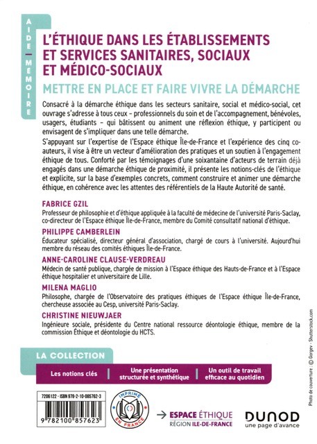 • Son contenu même : pouvoir bénéficier de la riche et actualisée réflexion des cinq co-auteurs, appuyée par celle menée au sein de l’Espace éthique Ile-De-France et des nombreuses instances éthiques locales qui y échangent à travers un observatoire des pratiques et un réseau.
